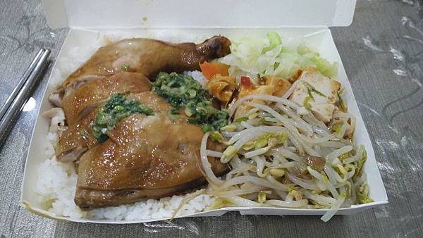 但是為什麼我放的是油雞呢?因為才六點去點餐,竟然已經沒有烤鴨了啊!但是沒關係,因為他的油雞也非常好吃的。只是有點遺憾不能吃到雞鴨雙拼就是.......人總是貪心的。